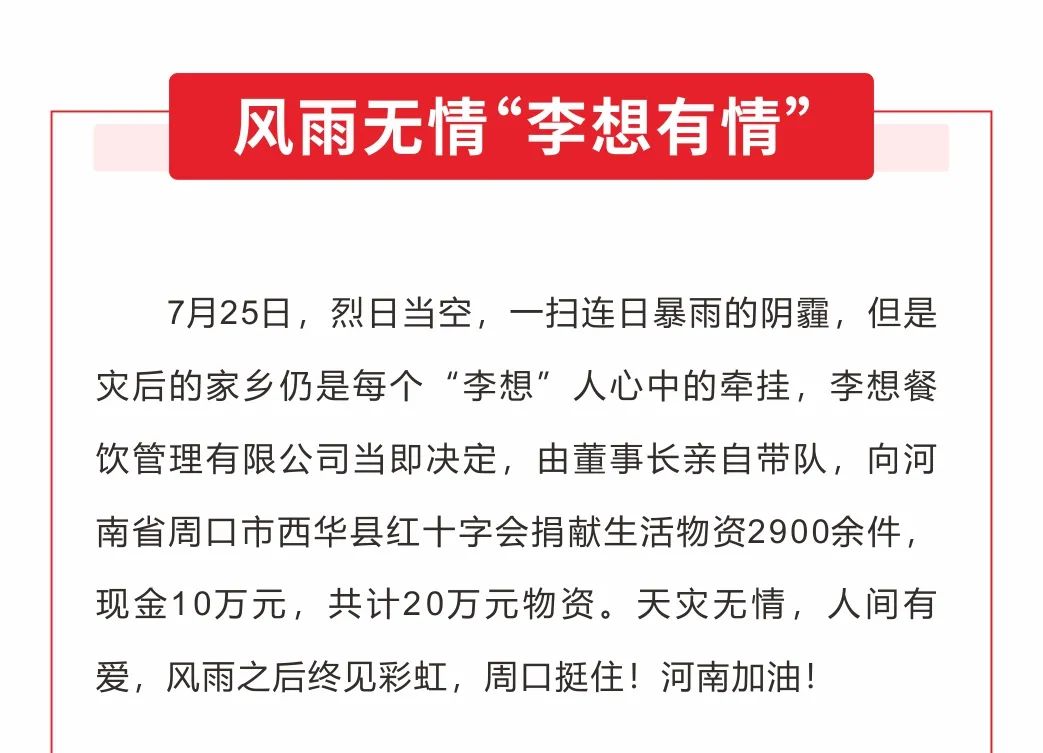 李想餐飲不忘初心,情系家鄉(xiāng)回饋社會!